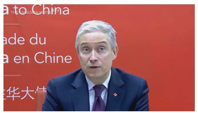 4月3日,商鹏飞会见何立峰。图源:Bill Curry/The Globe and Mail