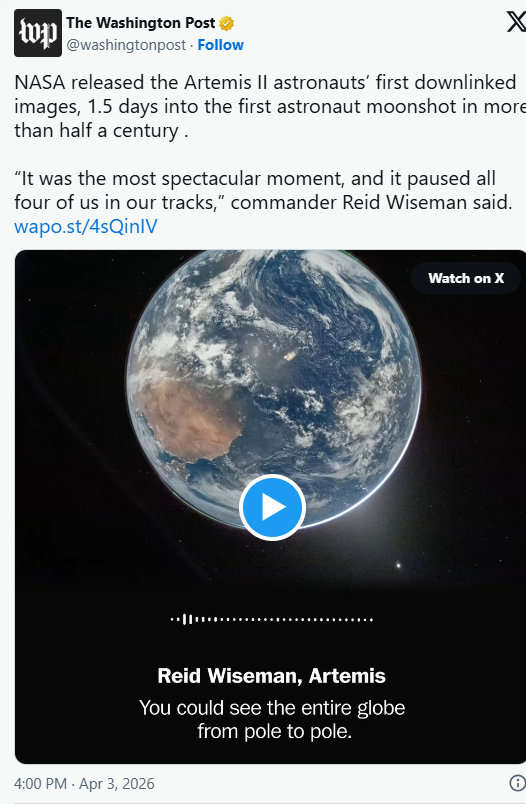 这批照片让公众得以一窥航天员眼中的地球,也为阿耳忒弥斯II绕月任务增添了人文和视觉魅力。