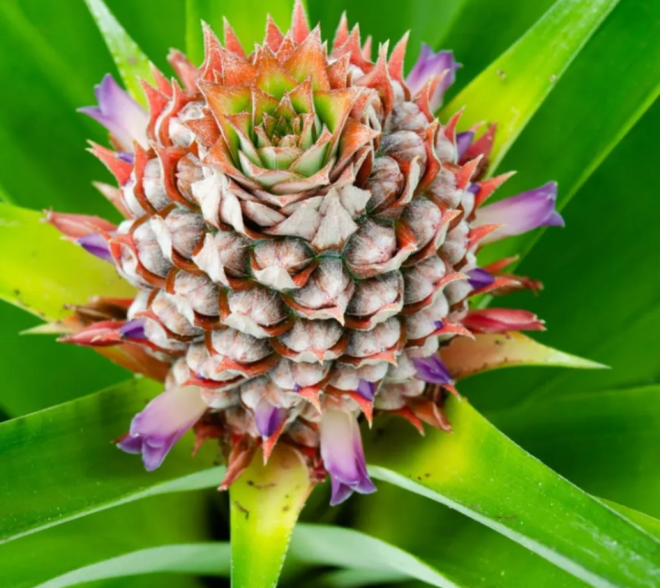 直到去年秋天,奇迹出现了——一颗小菠萝从叶丛中冒了出来。