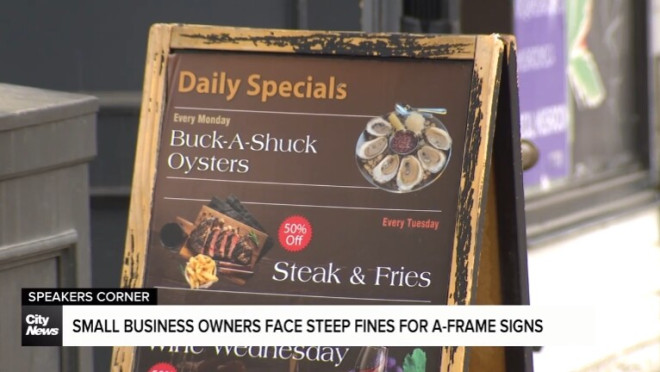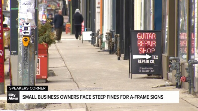 市中心商圈Queen West的多家小店,因在店外摆放A字招牌而被处以高额罚款,引发店主们的强烈不满。