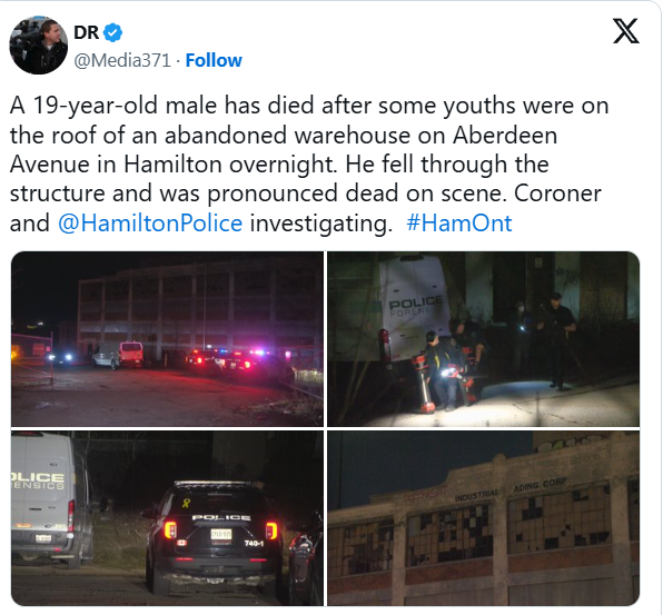 一名19岁男子周六凌晨在汉密尔顿一处废弃仓库坠亡,警方正在调查事故原因。
