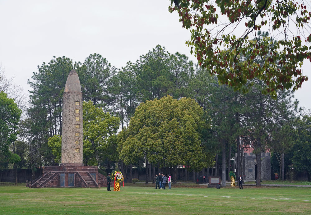 游客在江西省瑞金市叶坪革命旧址群红军烈士纪念塔前缅怀先烈(2026年3月20日摄,无人机照片)。新华社记者 周密 摄