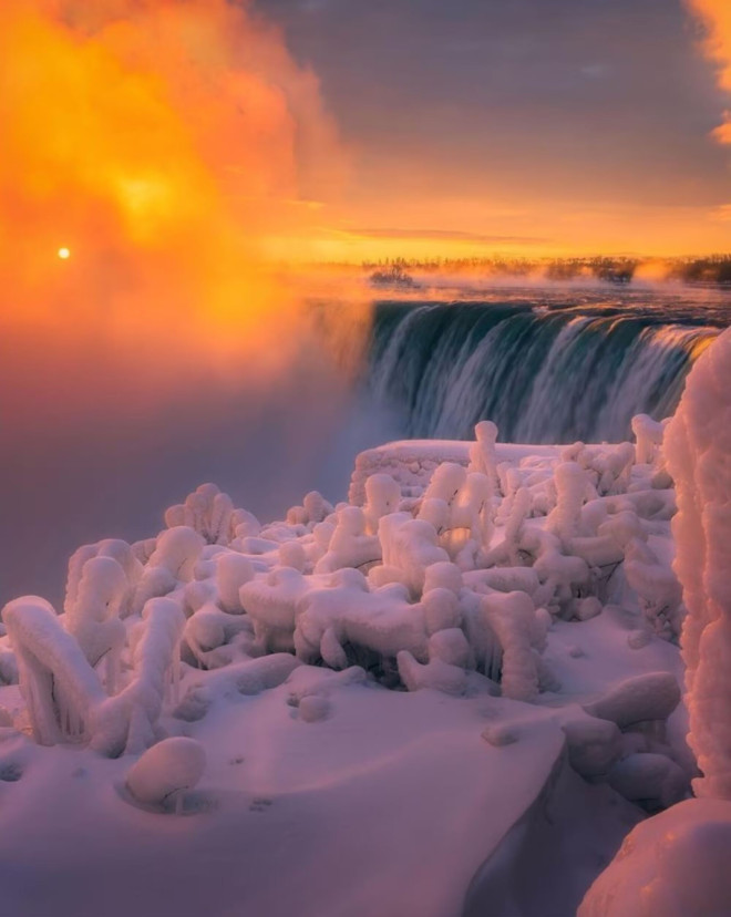 伴随这一自然奇观,一场以冰封瀑布为主题的摄影比赛也落下帷幕。由Niagara Parks主办的“冰封瀑布社交媒体大赛”,吸引了大量摄影爱好者和内容创作者参与(其中不乏许多华人摄影爱好者的作品,如上图)。他们通过镜头记录瀑布在极寒条件下形成的冰柱、冰雾与冰层景观,争夺最高5000元奖金。