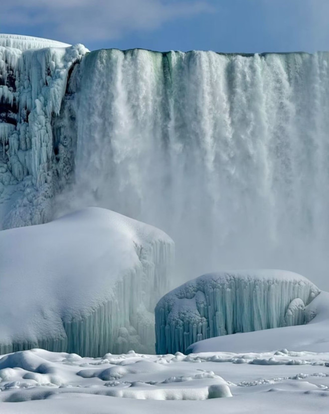 在经历一次十年一遇的极寒天气后,安省尼亚加拉大瀑布呈现出罕见的冰封奇观。如今,随着气温回升,这一壮丽景象正逐渐消融,但其短暂而震撼的美景,仍在社交媒体和公众视野中持续吸引着人们的眼球。