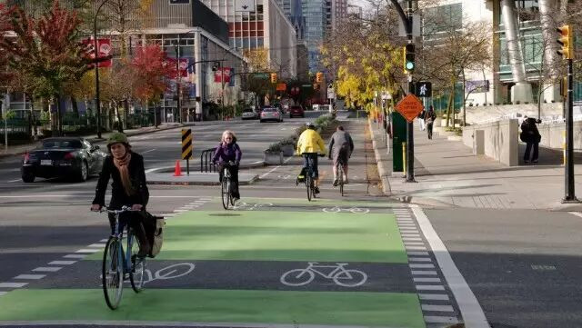 温哥华是一个对户外运动相当友好的城市。我们这到处都是供自行车使用的专用车道。