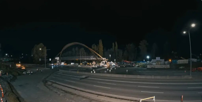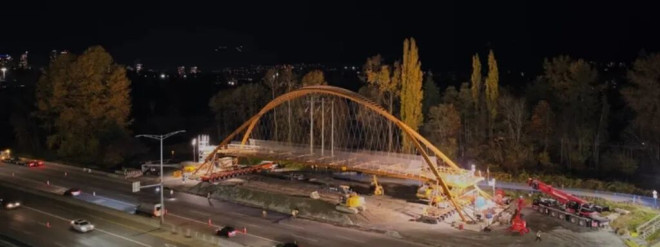本拿比市府也公布了视频,显示去年11月8日周六的晚上,高速公路曾临时封闭一夜进行关键吊装作业的过程。