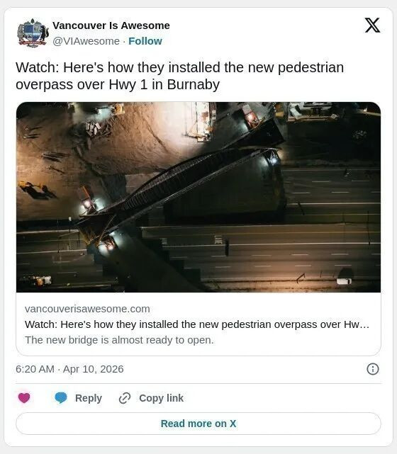 本拿比市政府发言人表示,目前该天桥尚未对公众开放,但开放日期将很快公布。