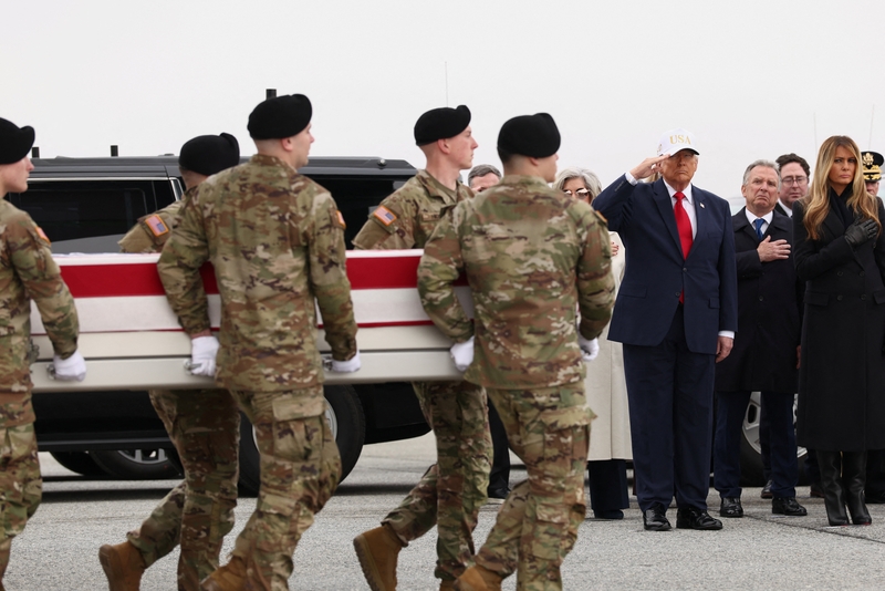 3月8日,美国特拉华州多佛市,特朗普出席仪式,迎接在科威特阵亡的6名美国军人遗体 IC photo