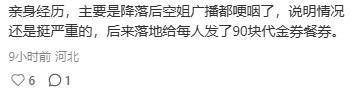 还有乘客透露细节:“降落后空姐广播都哽咽了,说明当时情况真的不轻松。后来每人发了90刀餐券。”