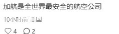 一位来自美国的网友直言:“加航其实是全球最安全的航空公司之一。”