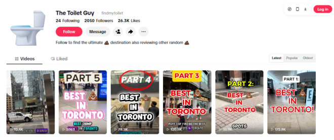 一名多伦多大学的学生最近在网上爆火,因为他发布了一系列视频,给该市的“顶级上厕所地点”做排名——这简直是一种我们之前都不知道自己需要的“公共服务”。