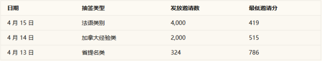 4 月 12 日数据未计入哪些抽签?加拿大移民部(IRCC)最新 Express Entry 数据未计入 4 月 13 日至 15 日的三次抽签,共发出 6,324 份 ITA: