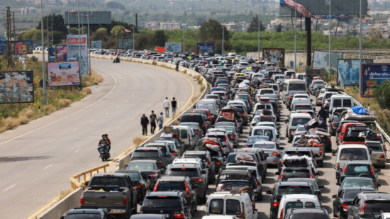 頂圖圖說:4月17日,在黎巴嫩提爾,人們乘坐汽車返回家園。(新華社)