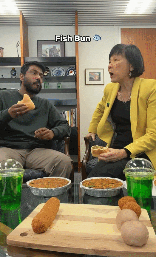 随后,他们品尝了来自Nantha Caters餐厅的Fish Bun,内馅是松软的鱼肉和土豆。
