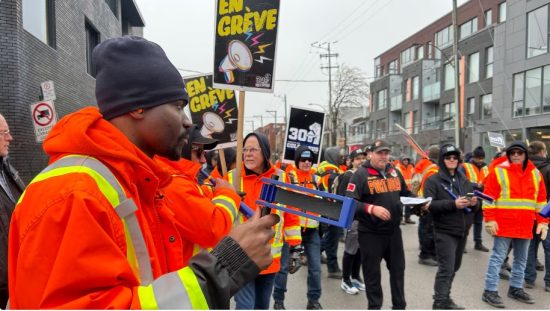 【時報訊】四月十七日週五,藍領工人在滿市市政廳前舉行抗議活動。根據Noovo Info新聞社報導,這次示威活動導致該地區的Notre-Dame街完全封閉。