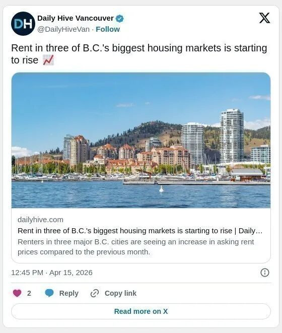 不过,BC省另外两座主要城市的租金涨幅更为明显。