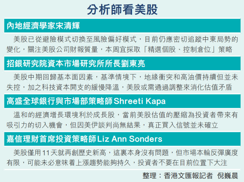 「面對指數創新高和美伊衝突不確定性未完全消散,投資者關注點已從『是否反彈』轉向『反彈的持續性』。」宋清輝表示,地緣政治仍是市場潛在的波動源,目前仍應密切追蹤中東局勢的變化,關注美股公司財報質量,觀察盈利增長能否支撐估值水平。