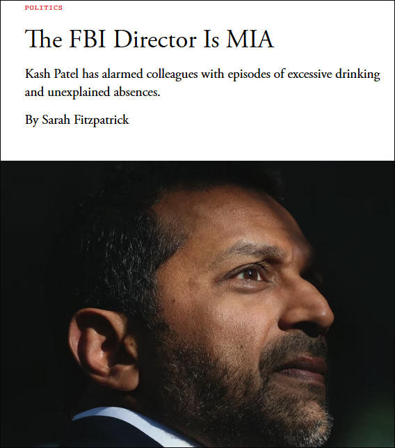这场风波的导火索,是该杂志当天刊发的一篇报道。报道披露,帕特尔的同僚正愈发警惕其多次酗酒过度、无故缺勤的不当行为,甚至经常出现因帕特尔前夜饮酒过量,一些会议和简报不得不推迟举行的情况。