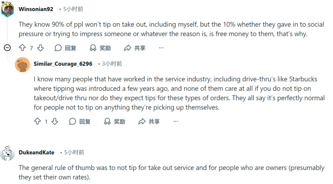 “他们知道90%的人不会在外带时给小费,但剩下那10%碍于面子、压力还是会给——这就是‘白赚’的钱。”