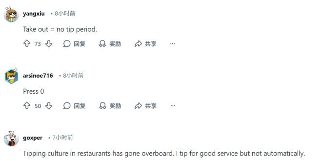 • “小费本来是服务好才给的,现在成了默认,实在太过分。”