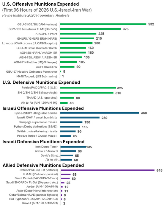 如果只看美军,估计消耗“爱国者”325发,“标准”系列310发,萨德80发。
