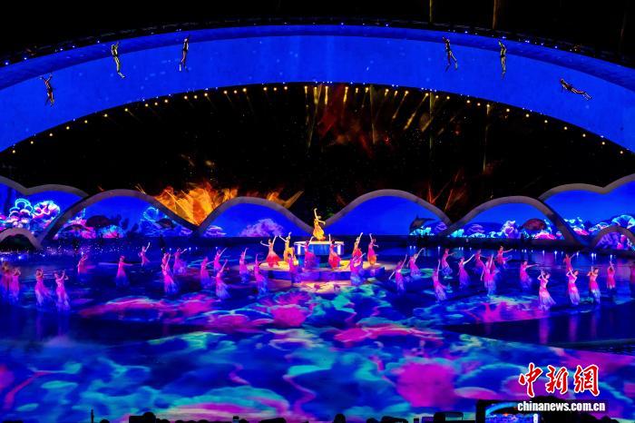 18分钟的文艺表演,浓缩了海洋文化与海南自贸港开放精神。制作总监魏来表示,团队利用高空威亚与地面影像联动,呈现“高中低、前中后”的全景视觉。