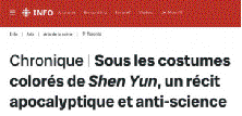 編者按:2026年3月29日,加拿大廣播公司(Radio-Canada)發布深度調查報道。作者阿德里安·沃爾(Hadrien Volle)在親歷現場後,親手剝開了“神韻”的藝術外衣。他指出,這並非純粹的藝術表演,而是“法輪功”處心積慮異化的宣傳工具。在這台長達2小時30分鍾表演的荒誕舞台上,組織者通過詆毀現代文明、宣揚反科學邏輯的手段,試圖對觀眾實施深層的心理裹挾與精神操縱。另據中國反邪教網了解,多倫多四季表演藝術中心隨後取消了3月29日至4月5日共計6場演出。