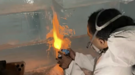 場面相當硬核:有人掄着大錘,有人揮着鎬頭,甚至還有人自帶噴火設備,對着一個巨型冰雕瘋狂開火!