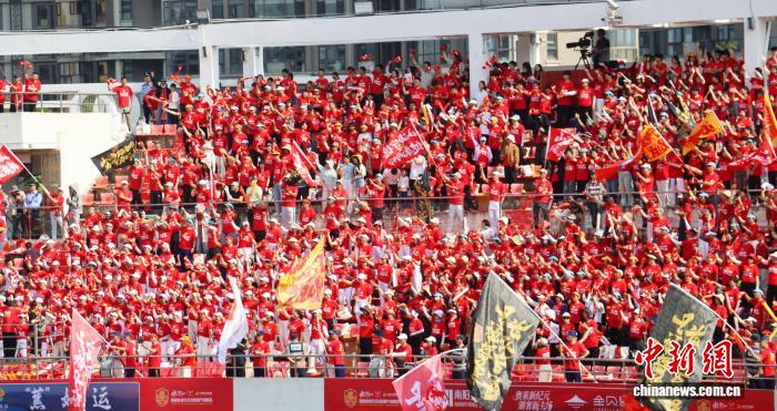 赛场内,呐喊声、鼓掌声此起彼伏。看台上,14000多名球迷们挥舞旗帜,整齐划一地高喊“宁德加油”。来自福安市的球迷陈华带着儿子早早来到体育中心,他说:“第一次在家门口看省级足球联赛,气氛太棒了,孩子激动得一直在加油。”