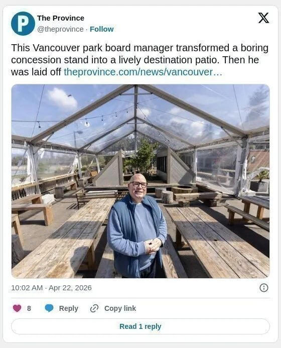 根据《省报》的报道,这名员工叫马克·哈利克(Mark Halyk),曾担任温哥华公园管理局餐饮运营负责人。他主导将基斯兰奴泳池(Kitsilano Pool)旁一处普通热狗摊,升级为集灯光、座位、现场音乐及酒水餐饮于一体的滨水露台项目“Batch”。