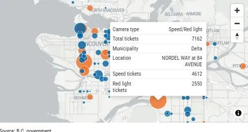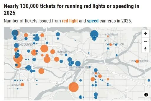 (加西网综合)去年,BC省有超过12.8万名驾驶者因超速或闯红灯被交通摄像头记录并开出罚单。一名当地公共卫生官员表示,这类系统不仅应继续存在,还应进一步扩大,因为“确实能挽救生命”。
