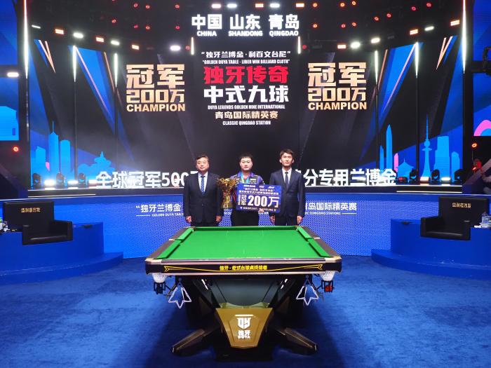 4月26日电 据赛事组委会消息,4月25日晚,“独牙兰博金·利百文台尼”独牙传奇中式九球青岛国际精英赛在青岛蓝宝石赛场迎来决赛,最终凭借关键时刻的稳定发挥与精湛球技,赵剑波成功登顶,捧起象征中式九球至高荣誉的荆棘王冠杯。