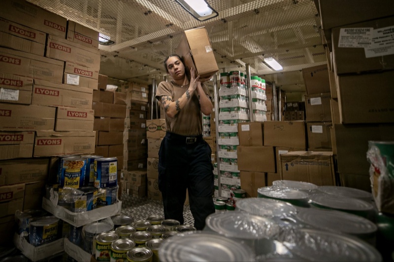 美国海军作战部长办公室4月18日曾表示:“近期关于我们部署舰船存在食物短缺和质量低劣的报道是错误的。”该办公室还发布了几张照片,展示“林肯”号和“的黎波里”号上供应着热气腾腾的新鲜餐食和堆到天花板的物资。