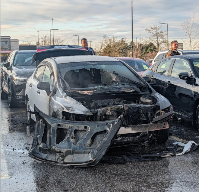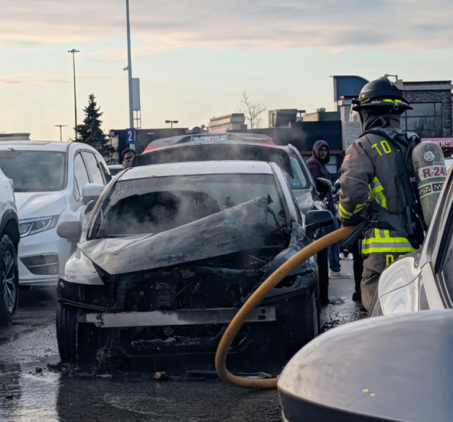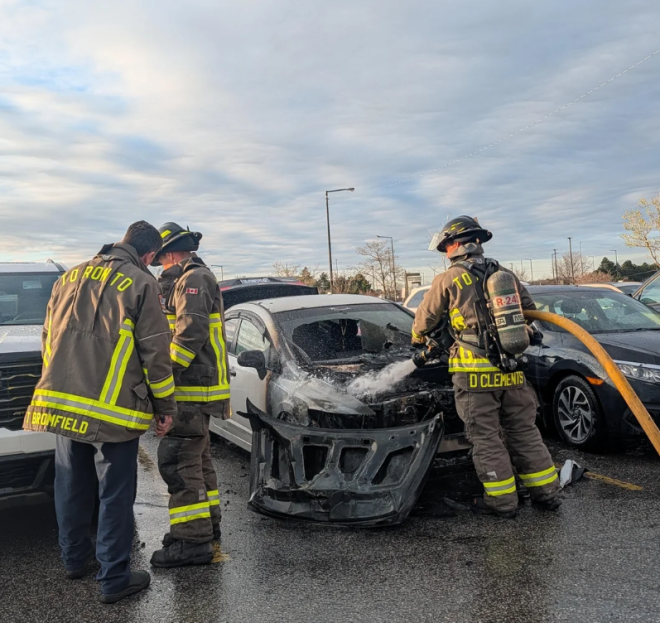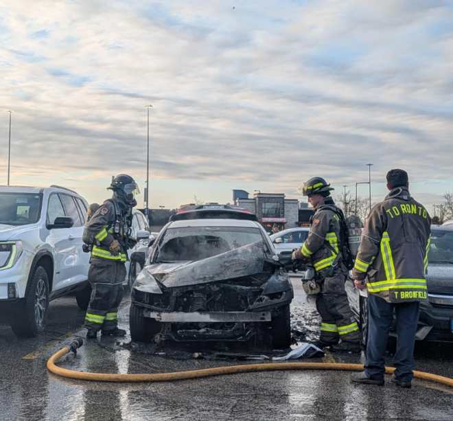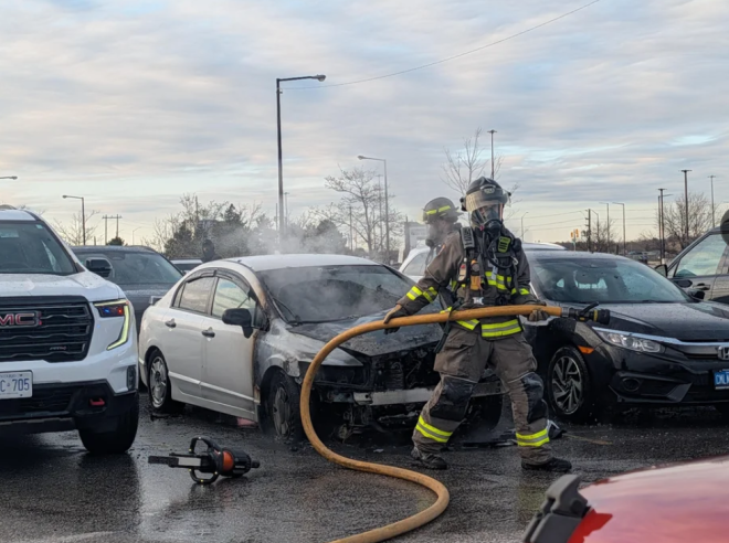 4 月 25 日(星期六)傍晚约 6:53, Town Centre 购物中心停车场第 2 区(Jack Astor’s 餐厅对面)突发车辆起火事故。多伦多消防局迅速赶到现场扑灭火势,幸无人员伤亡。