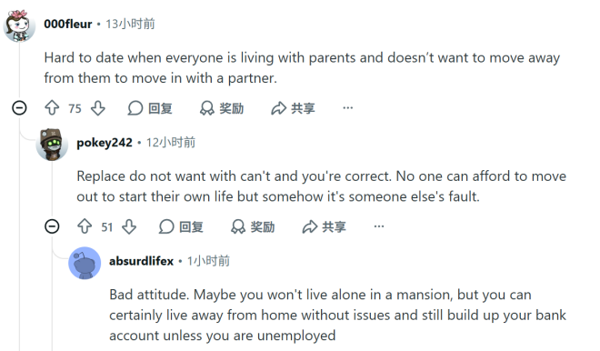 不过也有网友坚持”只要肯努力,还是能搬出去、攒钱”,但更多人认为,经济压力和大环境让人难以独立。”这些年经济一直很难,哪怕做了’对’的选择,日子也未必好过。”
