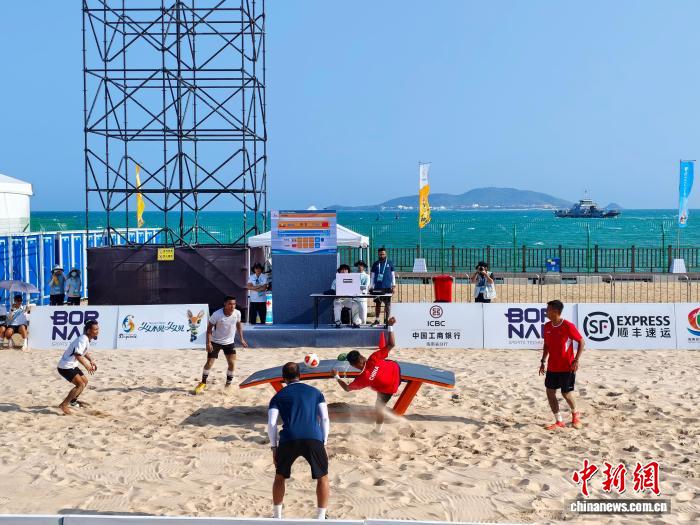 三亚4月27日电 (记者 王子谦)26日下午,三亚海边的沙滩上,一张拱形球台两侧,四人身形微弓。猛然间,一方头球顶过中网,砸向对方台面;另一方飞身垫起传球,队友一记漂亮的凌空扣杀得分,迎来满场欢呼。
