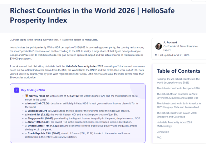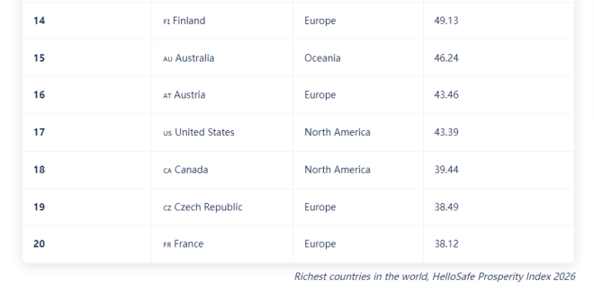 与此同时,金融平台HelloSafe发布《2026全球繁荣指数》,加拿大虽然仍属发达富裕国家,但只排世界第18位。