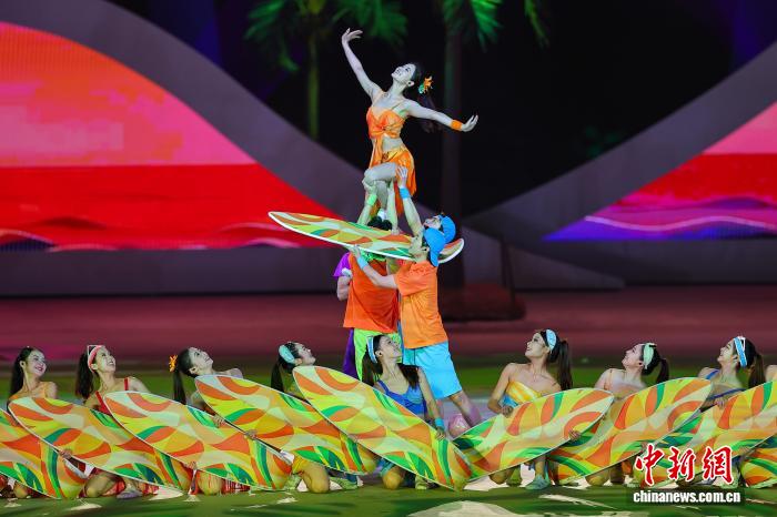4月22日晚,第六届亚洲沙滩运动会开幕式在海南三亚举行。图为开幕式上的文艺表演。 记者 骆云飞 摄