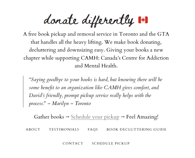 正在搬家,或者书多到自己搬不动? 在大多伦多地区提供免费上门取书服务,出售书籍的部分收益用于支持 CAMH(加拿大成瘾与心理健康中心)。