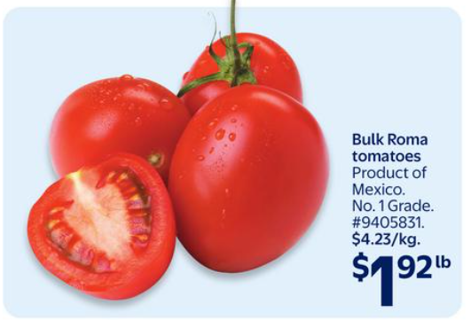 番茄 $2.49/lb。
