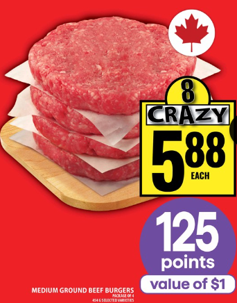 中等肥瘦牛肉汉堡肉饼 4 片 $5.88,返积分后相当于只要 $4.88。