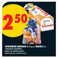 Wonder 面包或面包卷 $2.50。