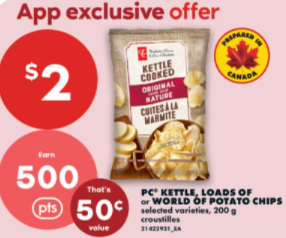 PC Kettle 薯片 $2.00,App 专属福利,买还能额外返 500 积分,算下来也就 $1.5 左右。