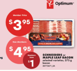 Schneiders 或 Maple Leaf 培根 $3.95。