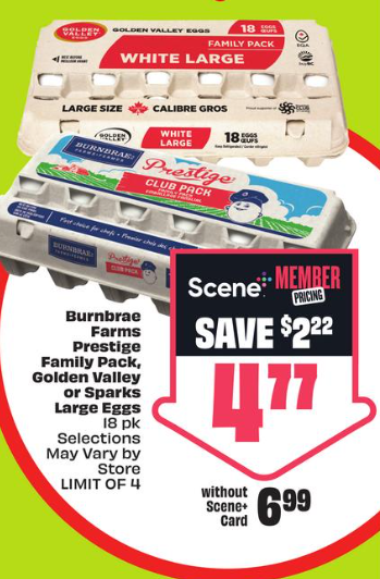 大号鸡蛋(18枚装)$4.77。