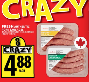 新鲜猪肉香肠(多种口味可选)$4.88/份。