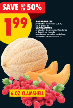 树莓 (6 oz) 、哈密瓜$1.99,最高节省 50%。