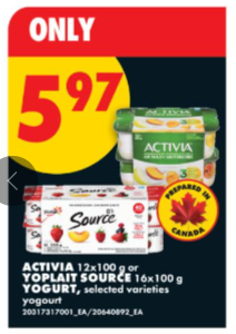 Activia 或 Source 酸奶 $5.97。