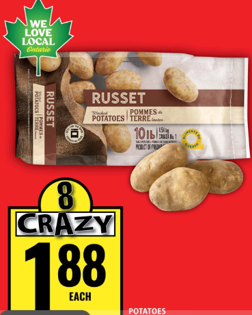 10 lb 装 Russet 土豆 $1.88。