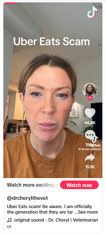 近日,一段在 TikTok 上疯传的视频让不少加拿大外卖用户警惕起来:骗子竟然能准确说出你刚下的 Uber Eats 订单细节,随后以各种理由诱导你泄露验证码。